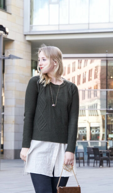 Frühlingslook: Blusen Layering mit Strickpullover in Dresden | Outfit