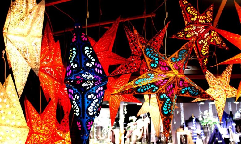 Weihnachtssterne auf dem Weihnachtsmarkt